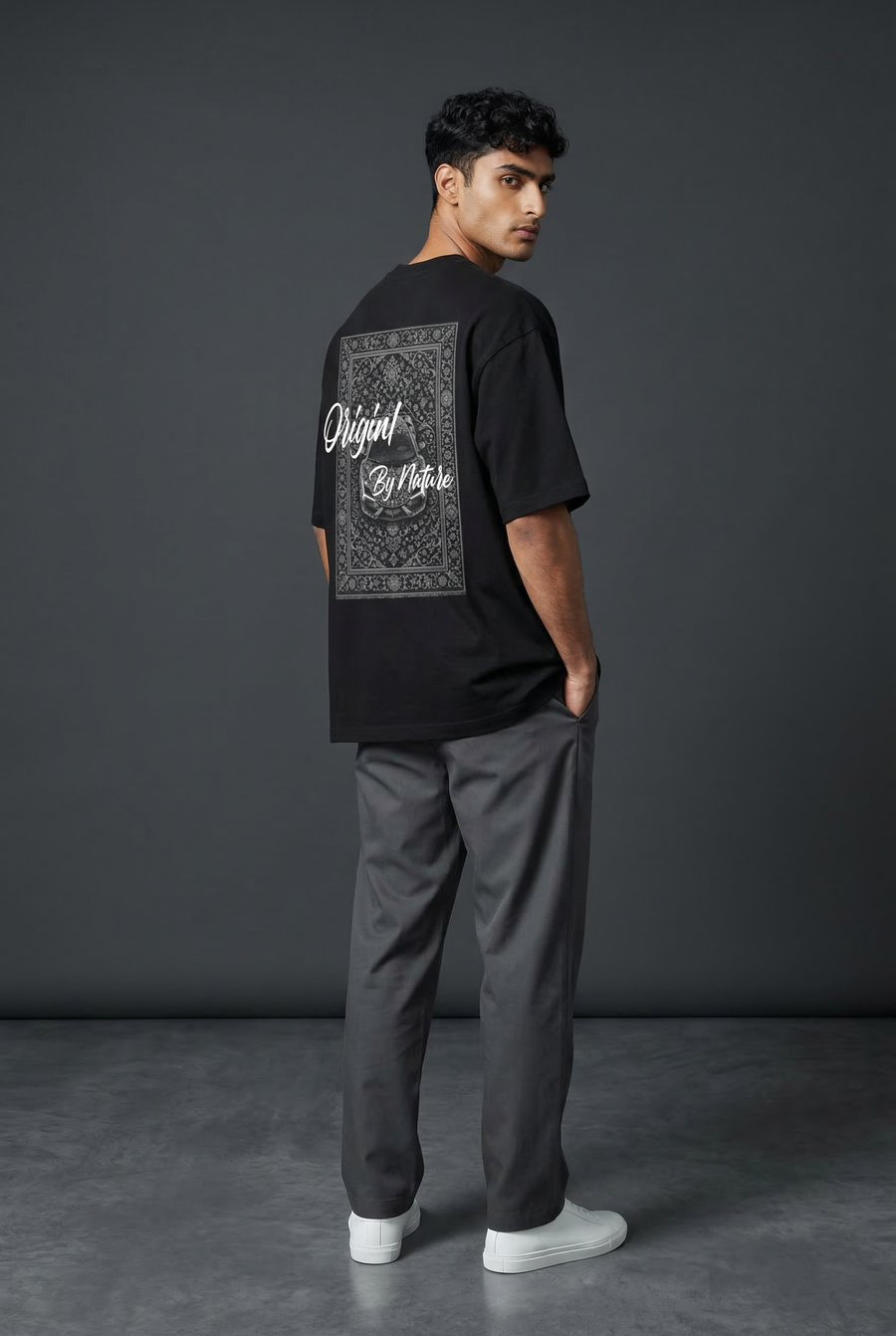تيشيرت أسود أوفر سايز بتصميم عربي مميز يجمع بين البساطة والقوة في نفس الوقت. يأتي هذا التيشيرت بطباعة أنيقة من الأمام ولعبارة "Originl By Nature - Lamborghini" في منتصف الظهر، لتمنح الإطلالة طابعاً جريئاً يعكس الثقة والشخصية القوية. اللون الأسود الكلاسيكي يجعل التيشيرت قطعة أساسية سهلة التنسيق مع الجينز أو الشورت أو أي إطلالة كاجوال عصرية.