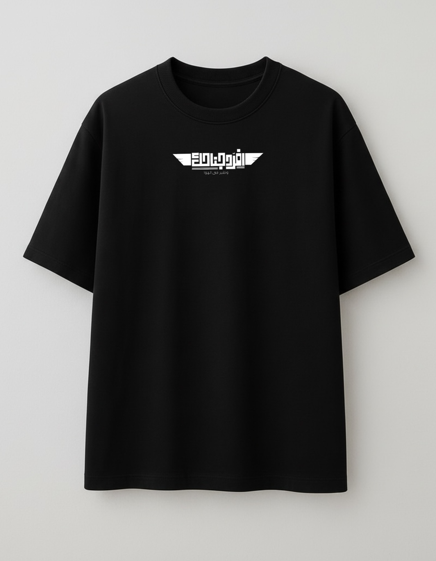 تيشيرت أسود أوفر سايز بتصميم عربي مميز يجمع بين البساطة والقوة في نفس الوقت. يأتي هذا التيشيرت بطباعة أنيقة لعبارة "افرد جناحك وطير في الهوا" في منتصف الصدر، لتمنح الإطلالة طابعاً جريئاً يعكس الثقة والشخصية القوية. اللون الأسود الكلاسيكي يجعل التيشيرت قطعة أساسية سهلة التنسيق مع الجينز أو الشورت أو أي إطلالة كاجوال عصرية.